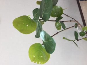 Ma-Luらしく、丸い葉っぱが可愛いシーグレープの葉が食べられてる!しかも、若葉ばっかり〜(>人<;)